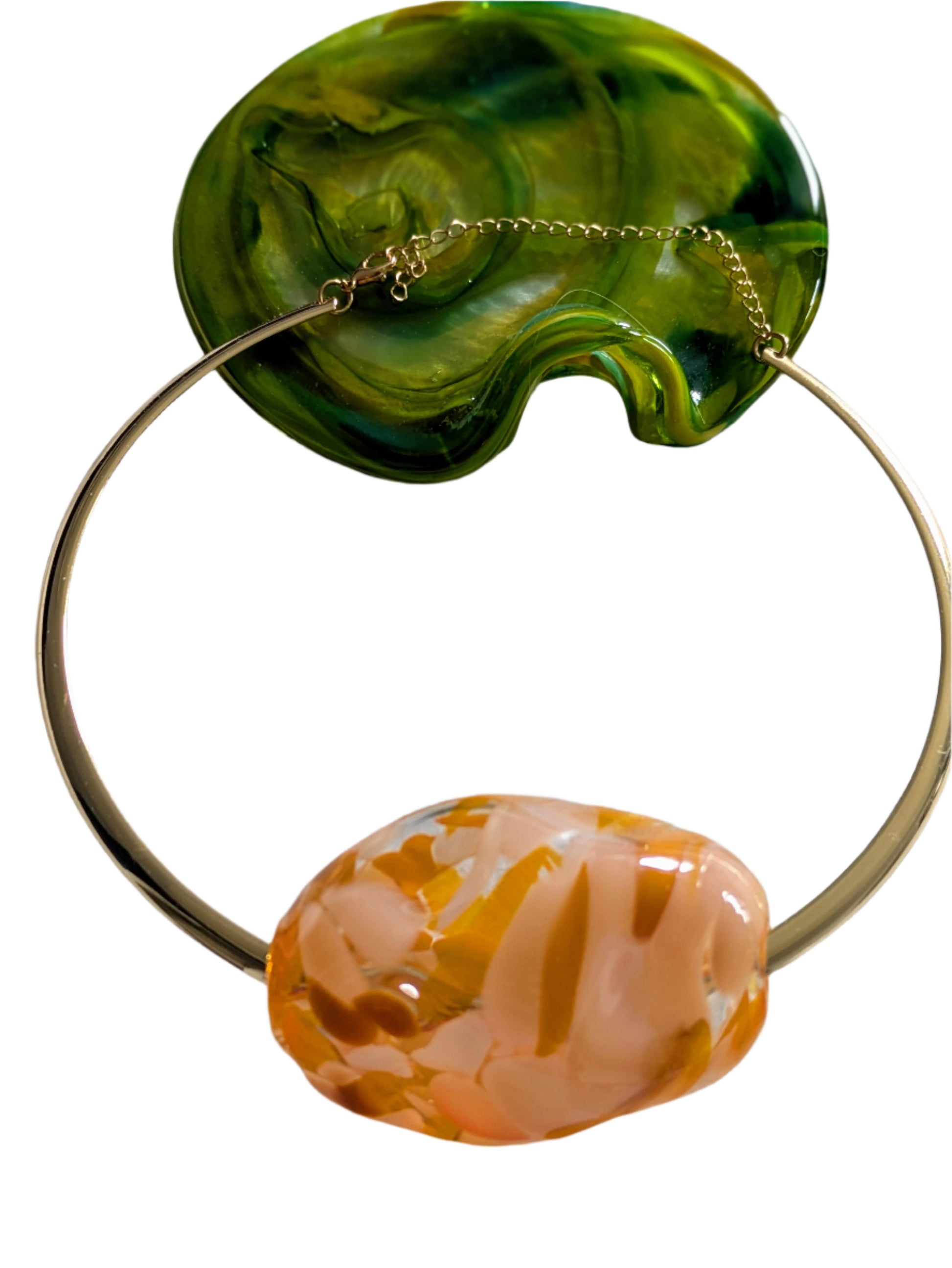 Make a statement with this exquisite artisan-blown glass balloon necklace, featuring a delicate, hand-crafted glass sphere suspended from a gold-tone collar ring. Designed for those who appreciate unique, artistic jewelry, this piece blends sophistication with contemporary elegance.