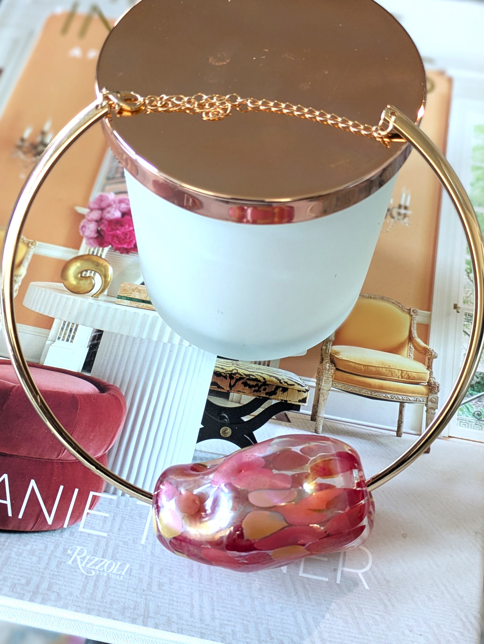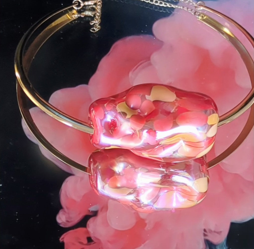 Pink Hand-Blown Glass Balloon Necklace with Gold Collar – Artisan Elegance