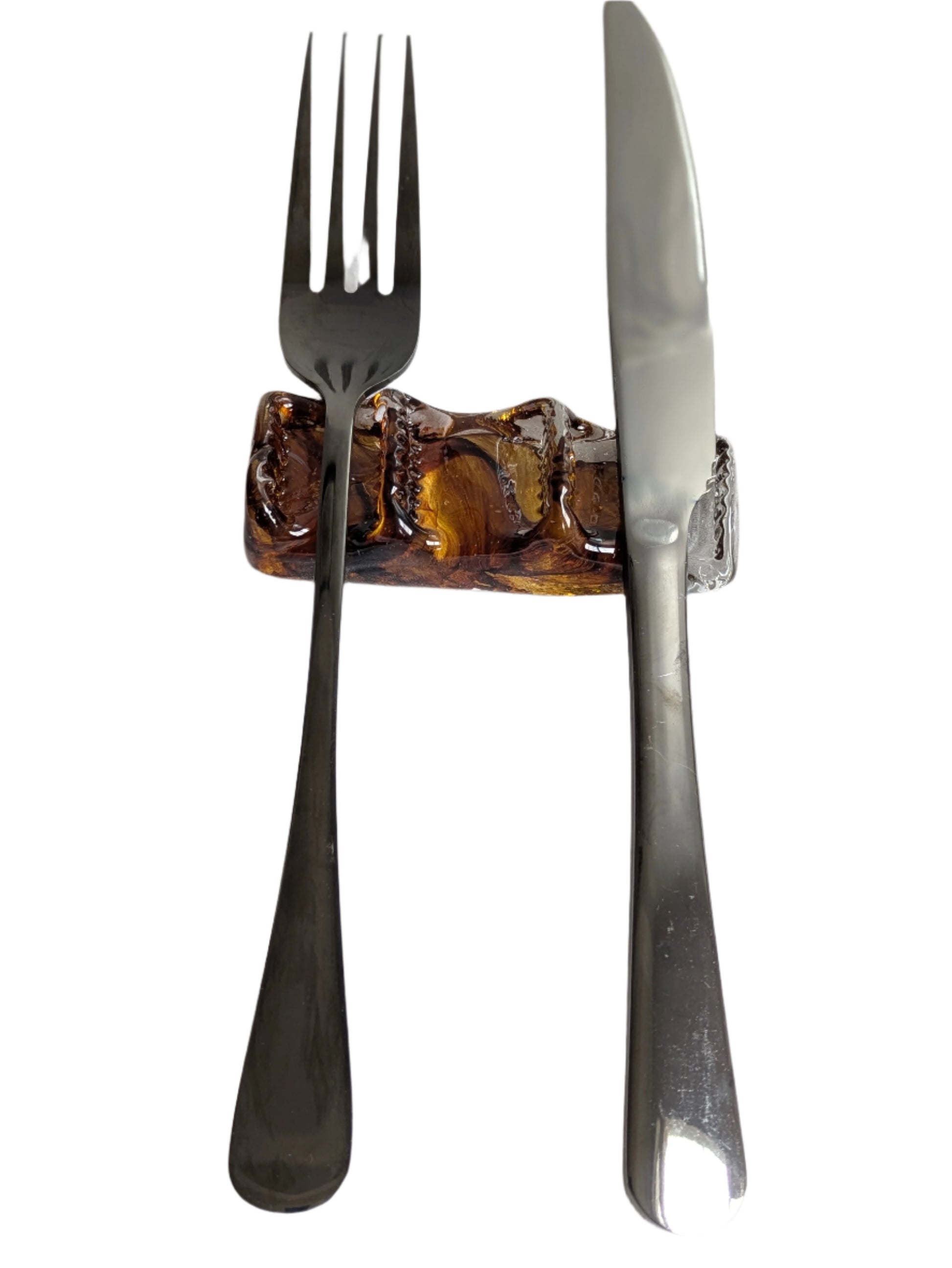 Brown Hand-Blown Glass Silverware Holder – Elegant Artisan Dining Decor