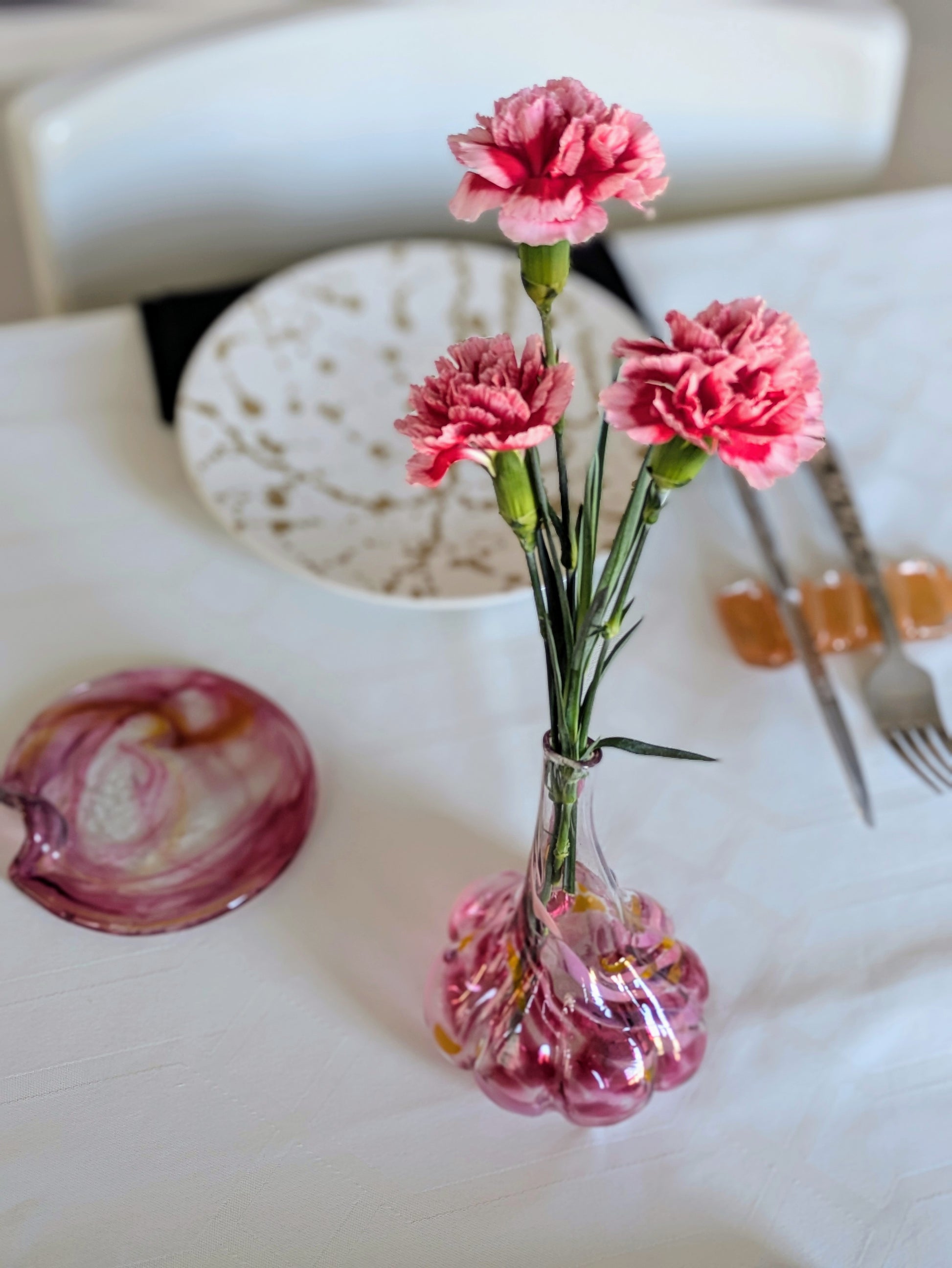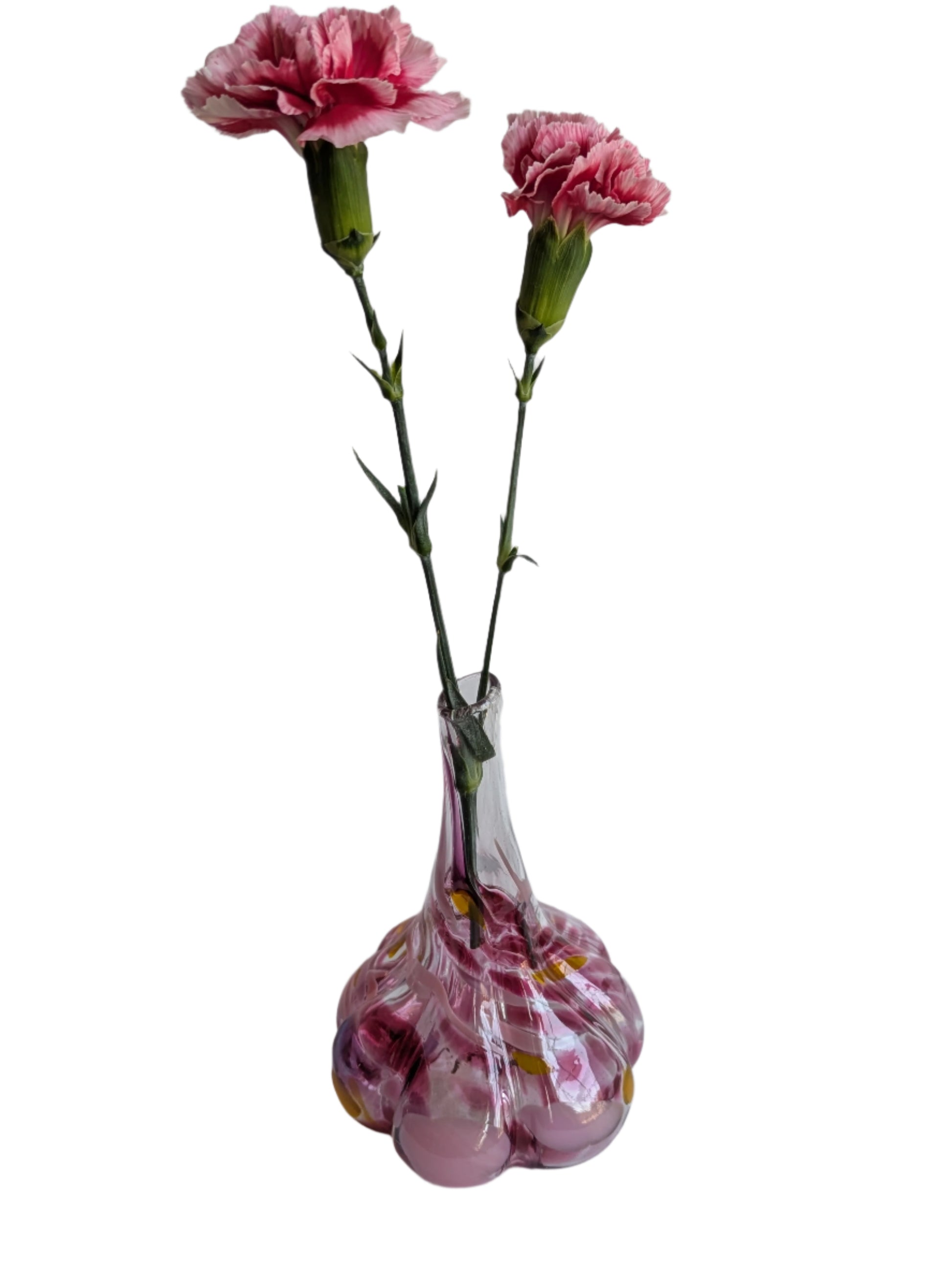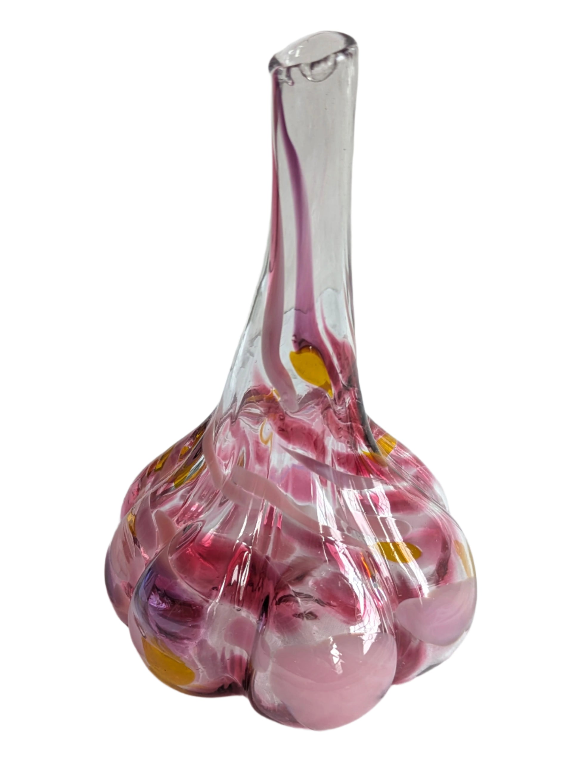 Pink Hand-Blown Glass Mini Garlic Vase – Unique Artisan Decor