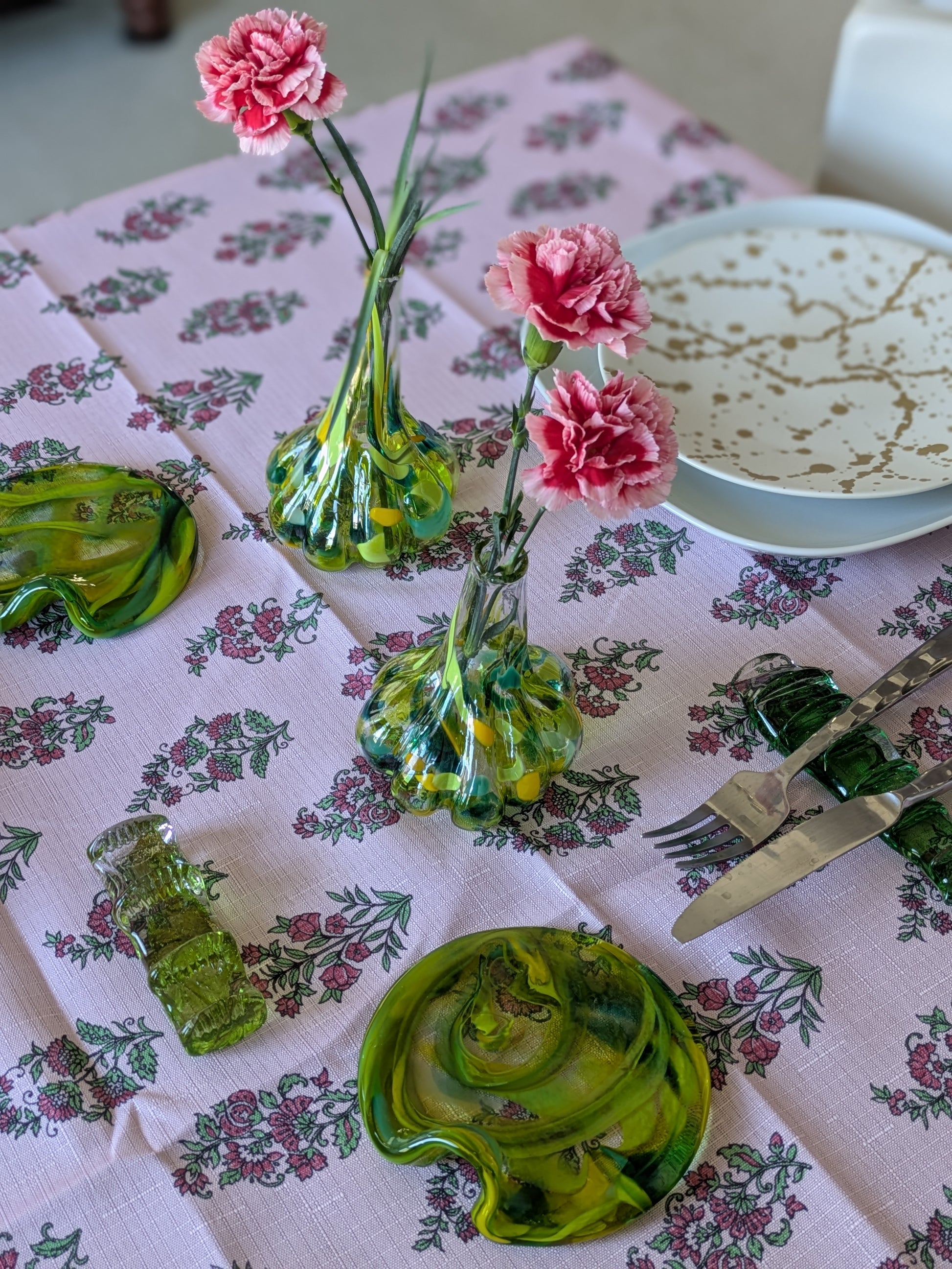 Green Hand-Blown Glass Mini Garlic Vase – Unique Artisan Decor