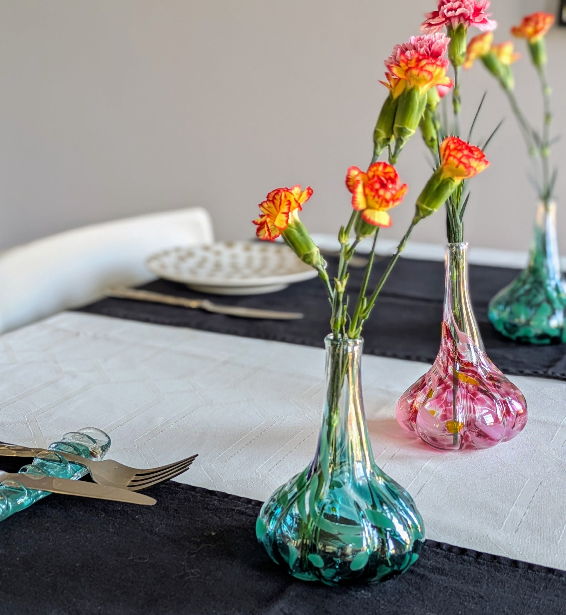 Turquoise Hand-Blown Glass Mini Garlic Vase – Unique Artisan Decor